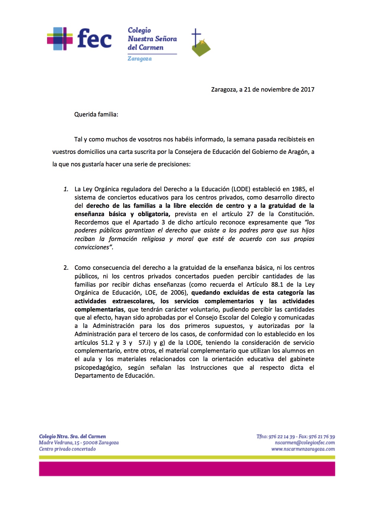 COMUNICADO DE LA DIRECCION DEL COLEGIO