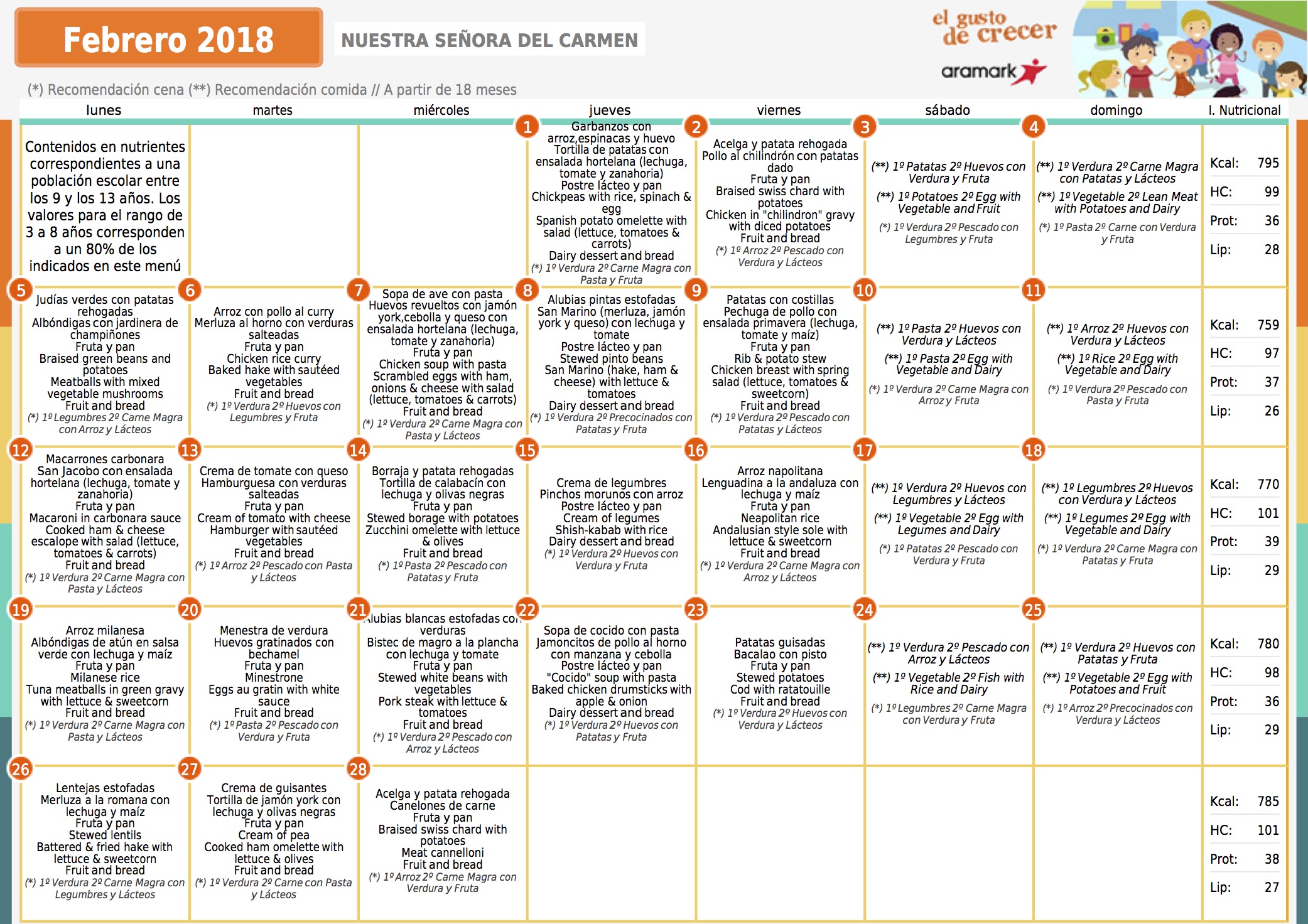 MENU FEBRERO 2018